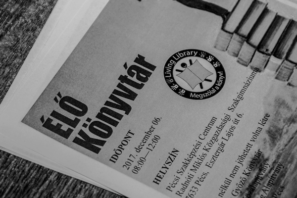 „2017. december 6.-án életemben először lehettem egy élő könyvtár rendezvény részese. A muszlim könyv szerepét töltöttem be. De szerintem először beszéljünk arról, hogy mi is az élő könyvtár. Ezt igazából úgy kell elképzelni, mint egy könyvtárat, ahol van nagyjából 15 könyv, amiket ki lehet kölcsönözni, csak ebben az élő könyvtárban a könyvek emberek, akiktől bármit kérdezhetsz, beszélgethetsz velük. Ezek a könyvek mind olyan emberek, akikről sok tévhit kering, vagy egyáltalán nem is beszélnek róla. Szóval én egy ilyen könyv voltam. A teremben volt még transzvesztita, leszbikus, mozgáskorlátozott, szenvedélybeteg, japán, gót, látássérült és néhány krisnás. Az olvasók gimisek voltak, így könnyebb volt megtalálni velük a közös hangot.