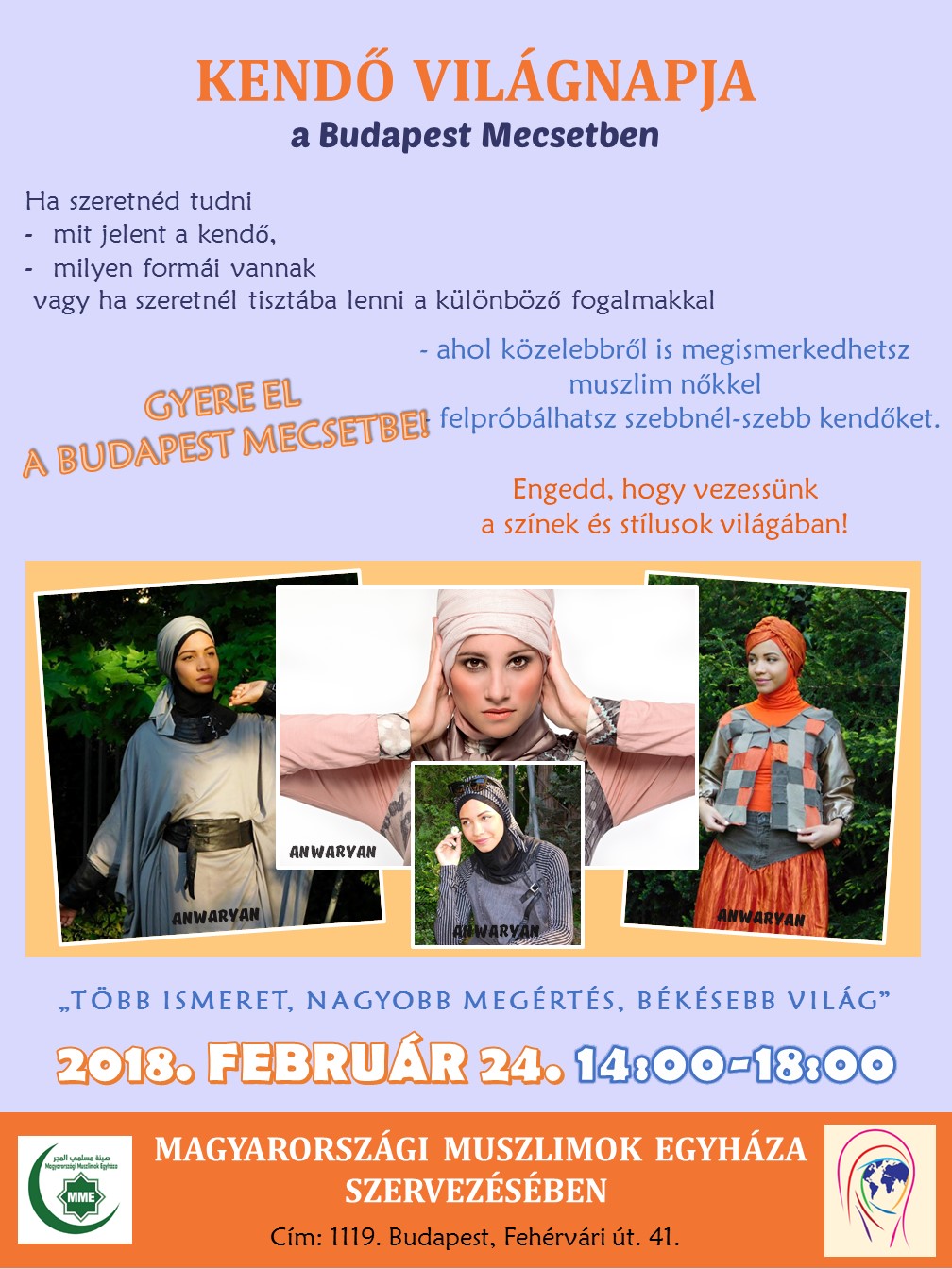 2018. február 24.-én kerül megrendezésre a „Kendő Világnapja” immár 3. alkalommal a Budapest Mecsetben, mely esemény a nemzetközi World Hijab Dayhez kapcsolódik.