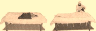 b. Egymás fölé tesszük a 3 leplet, és hanyatt fektetjük rá a halottat.